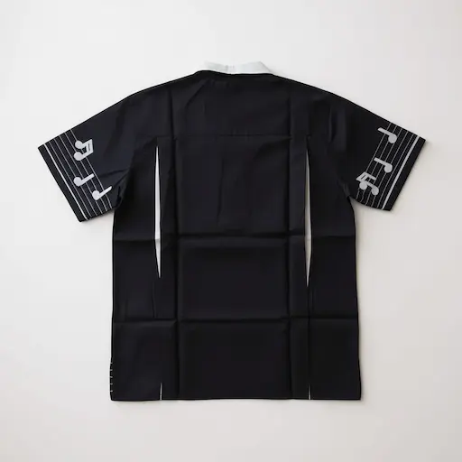 - Face avant : Design noir avec une portée de notes autour des manches et en bas du devant. Les lisérés blancs ajoutent une finition soignée et subtile.