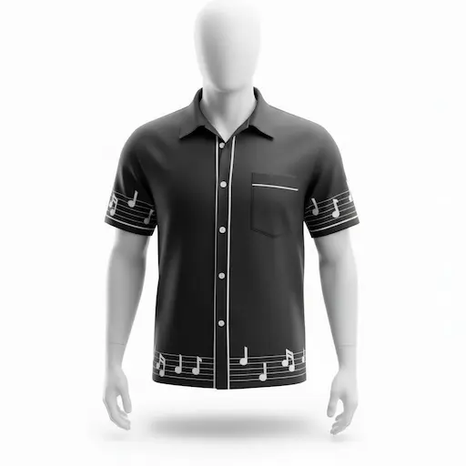 Chemise bowling noire avec notes – Look Rétro et Style Unique