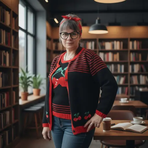 Succombez au charme rétro de ce gilet noir et rouge avec des cerises tricotées main. Inspiré des années 50, ce modèle capture l’essence du style pin-up et rockabilly, tout en offrant le confort et la douceur d’un tricot artisanal.