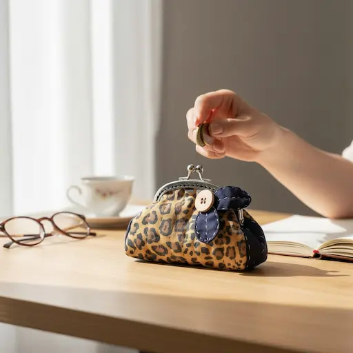 Ce porte-monnaie léopard évoque immédiatement une époque révolue, grâce à son design vintage et à son imprimé délicat.