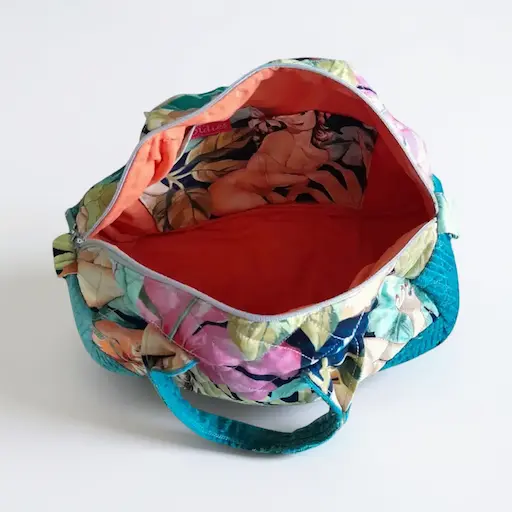 - Design intemporel : Le motif pin-up apporte une allure vintage et sophistiquée, complété par des empiècements en velours vert d’eau pour une touche décontractée. Sa forme rappelle les sacs de bowling.