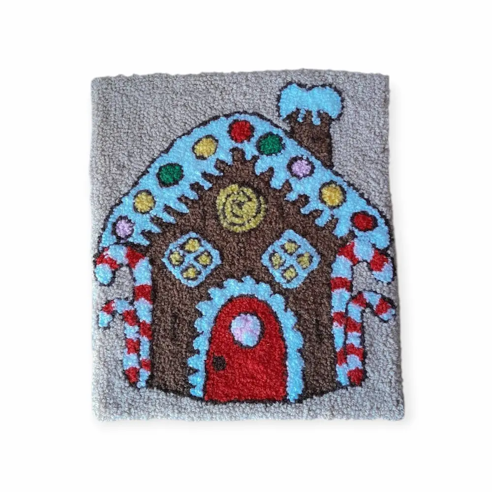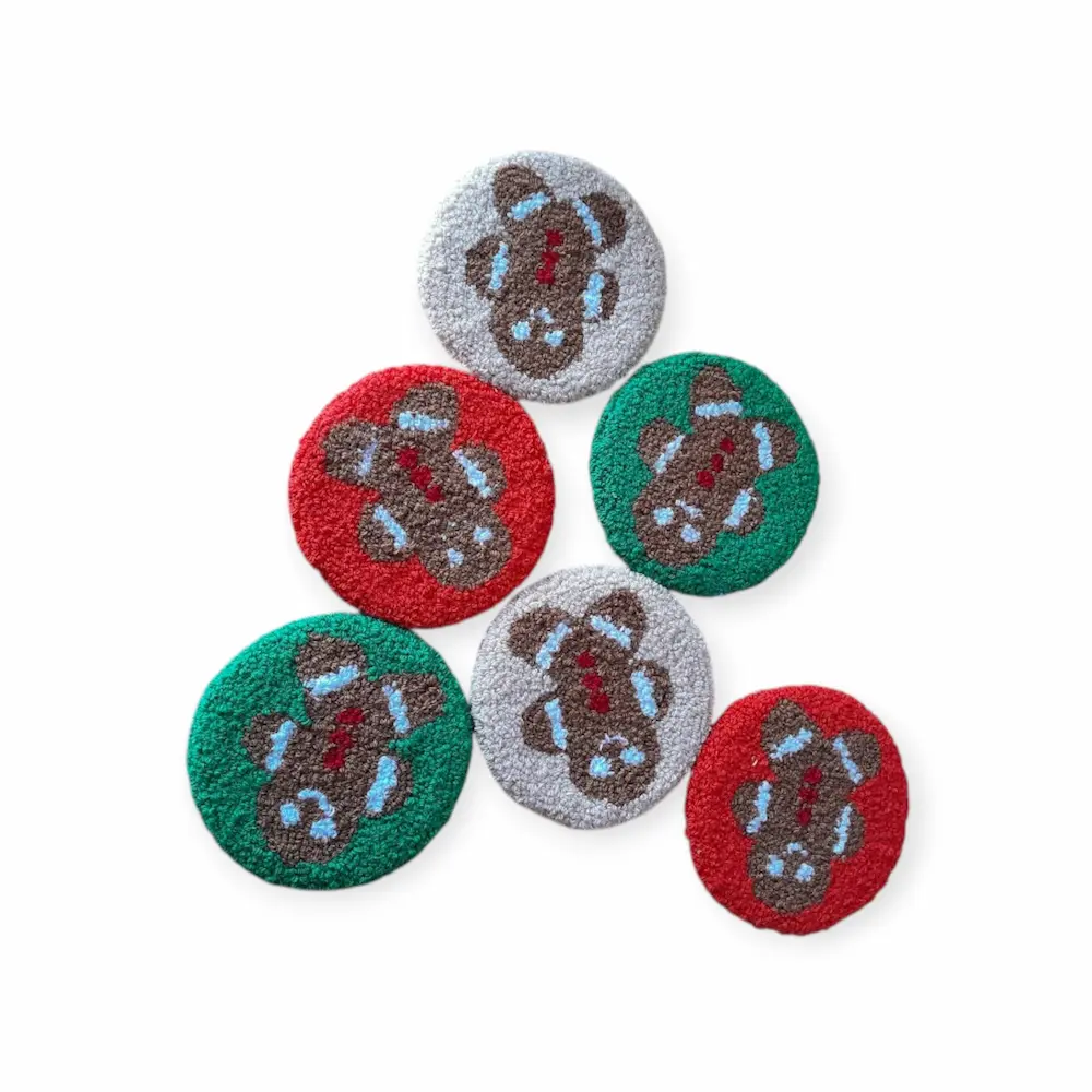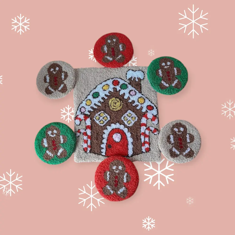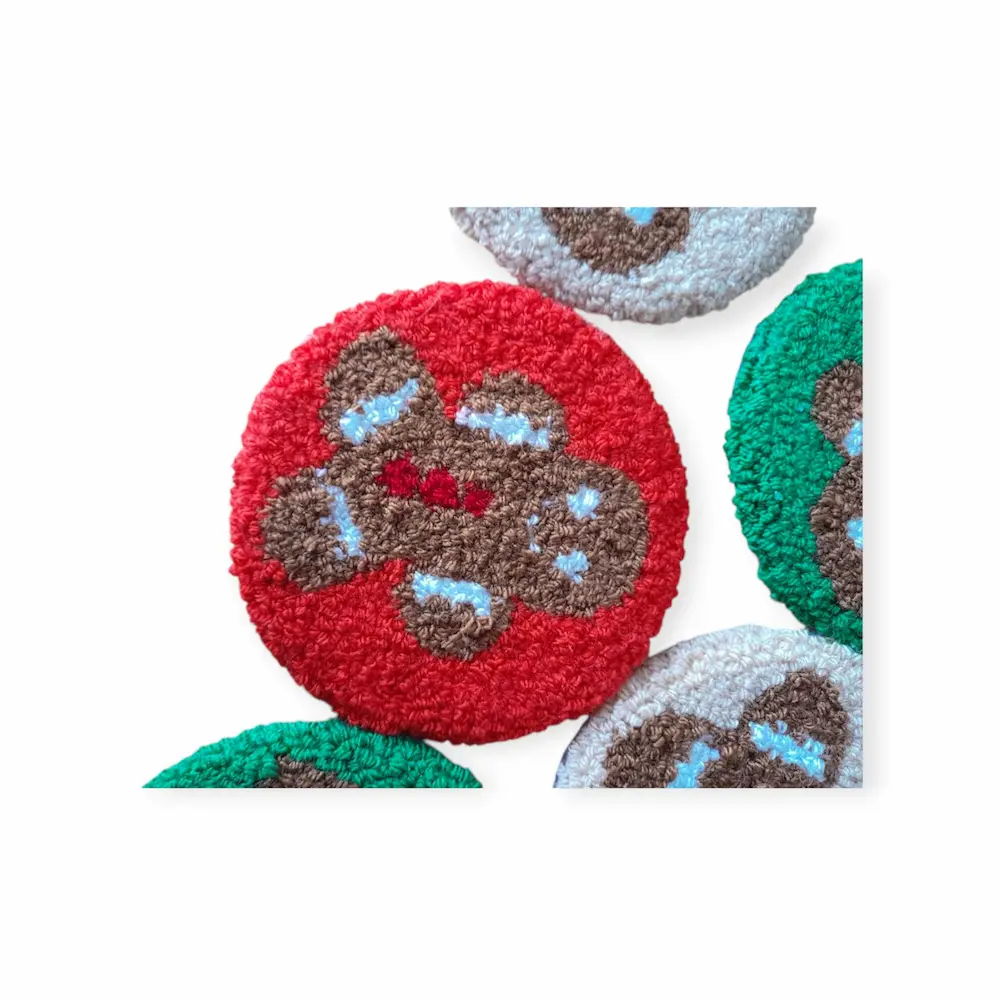 Set Apéro Noël en Punch Needle fait main : tapis central + 6 sous-verres