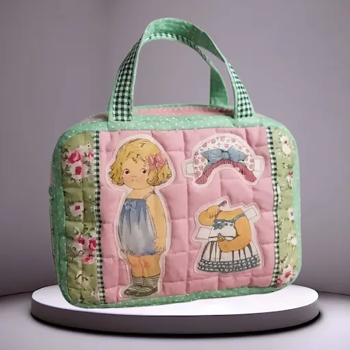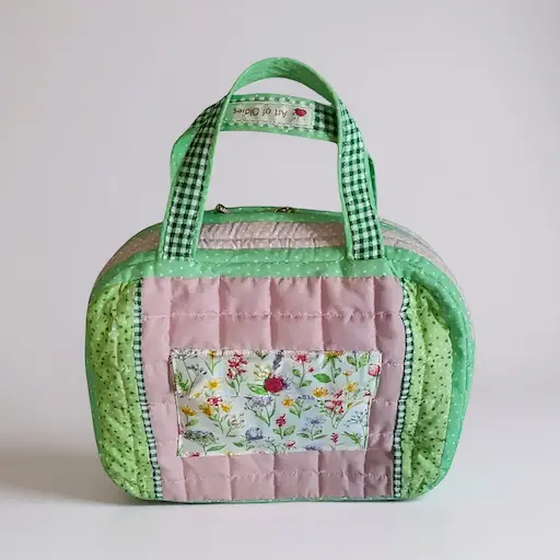 Apportez une touche d’originalité et de douceur à vos voyages avec cette superbe valisette en patchwork verte et rose au style kawaii. Conçue avec soin, elle combine des tissus variés aux motifs floraux et adorables, parfaits pour les amoureux du fait main et du design unique.